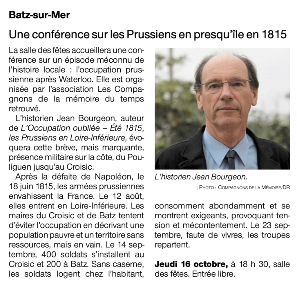 A retrouver bien sûr dans son livre : L’Occupation oubliée – Eteé 1815, les Prussiens en Loire-Inférieure