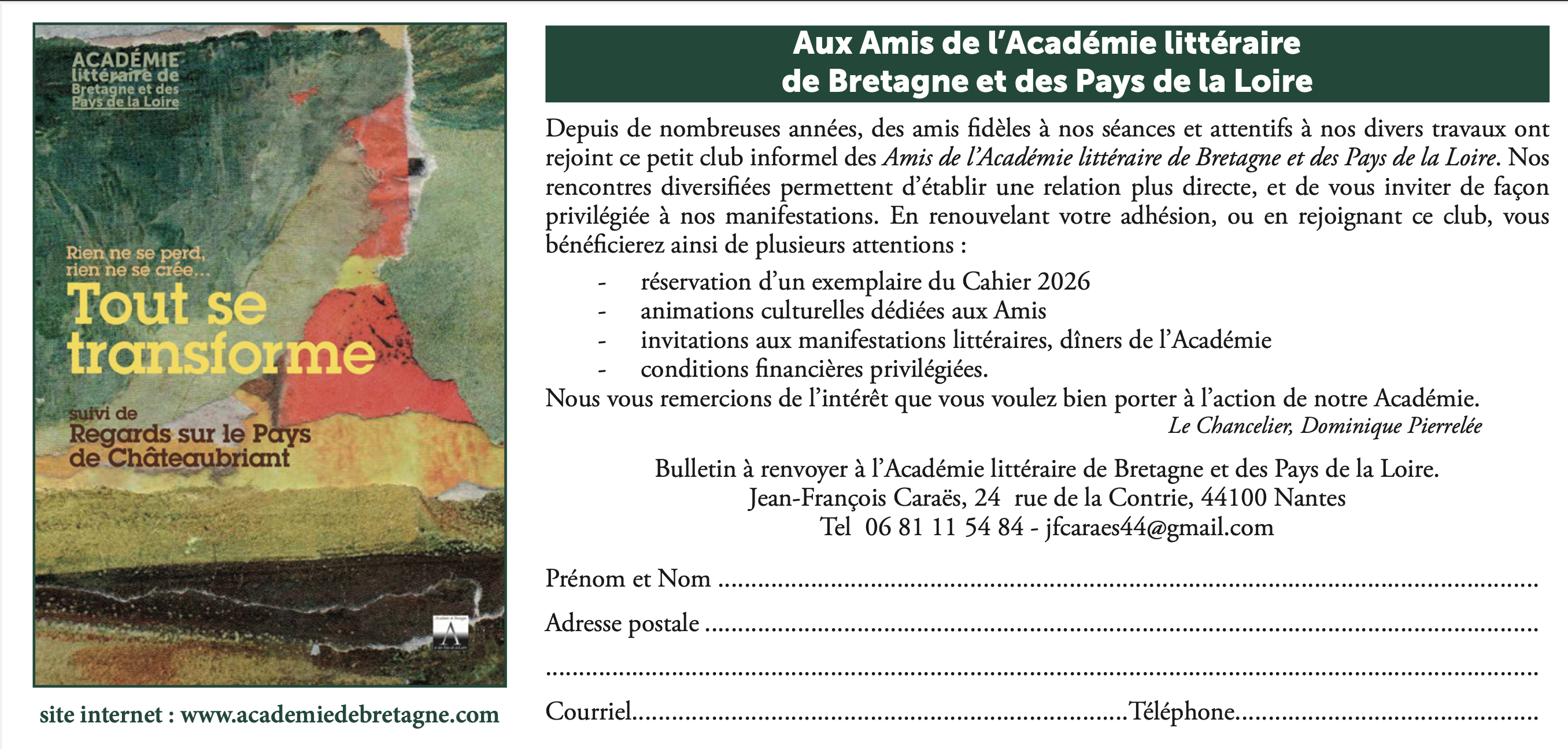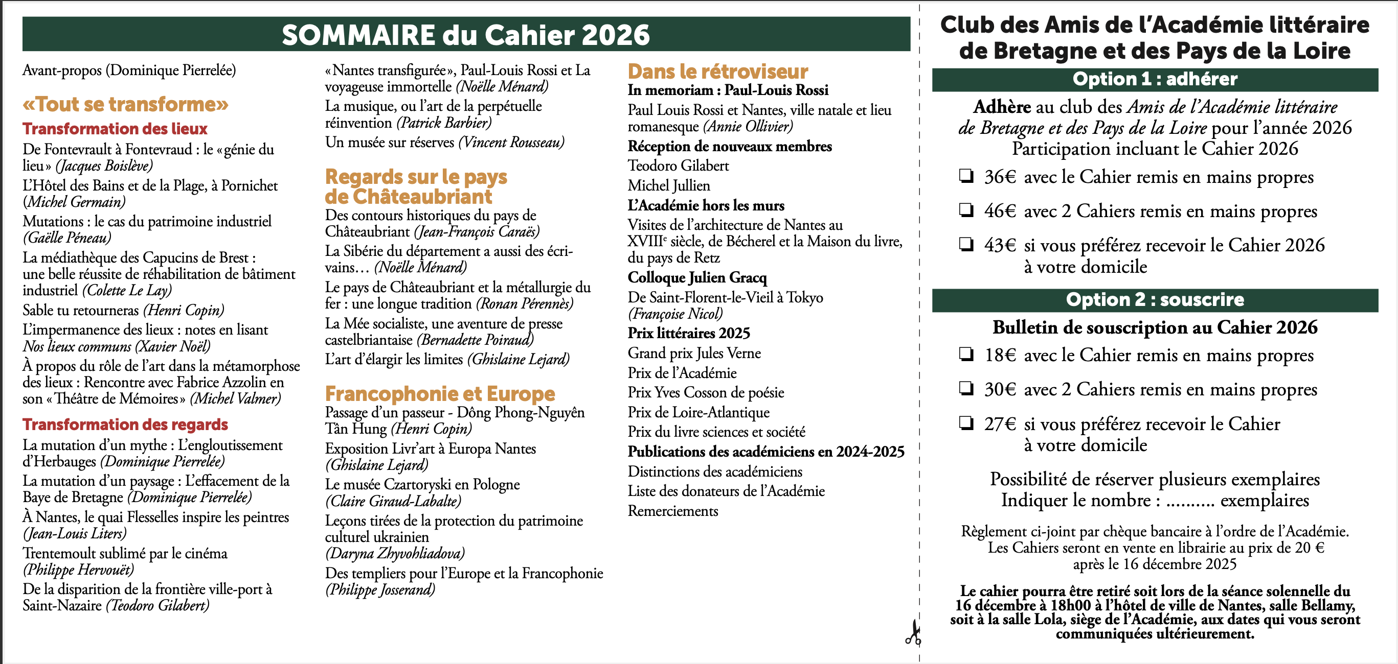L’Académie littéraire de Bretagne et des Pays de la Loire annonce son Cahier 2026