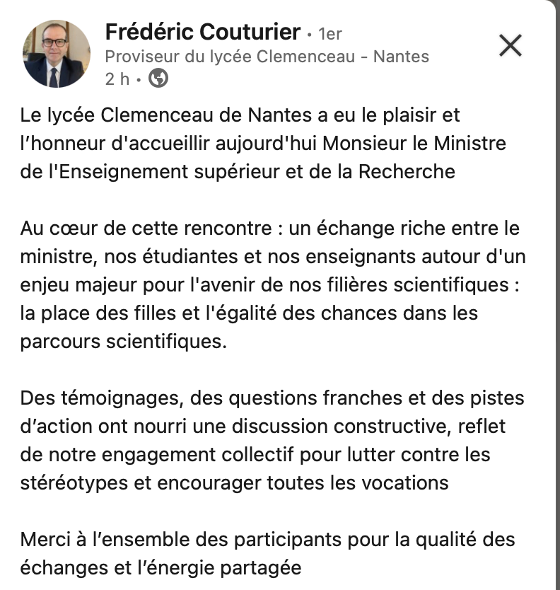 Le Lycée Clemenceau a reçu ce jour Philippe Baptiste,