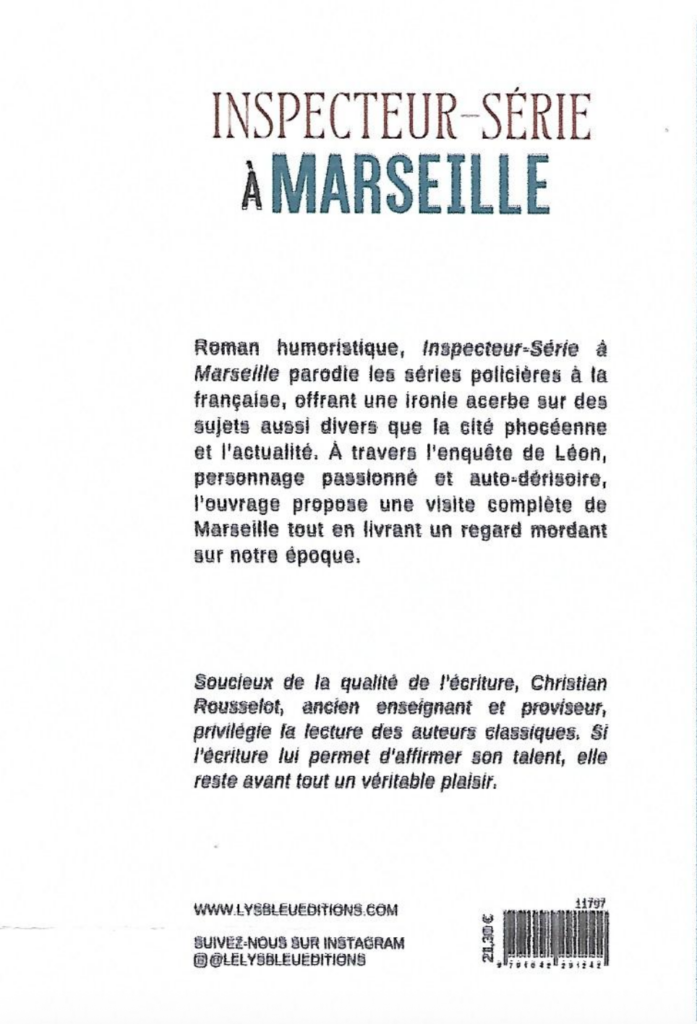 Notre ami Christian Rousselot qui fut Proviseur du Lycée au début du siècle écrivait, en activité, des livres de mathématiques, étant à la retraite il occupe maintenant ses nombreux loisirs à l’écriture de romans humoristiques. C’est ainsi qu’il nous présente » Inspecteur-série à Marseille ».