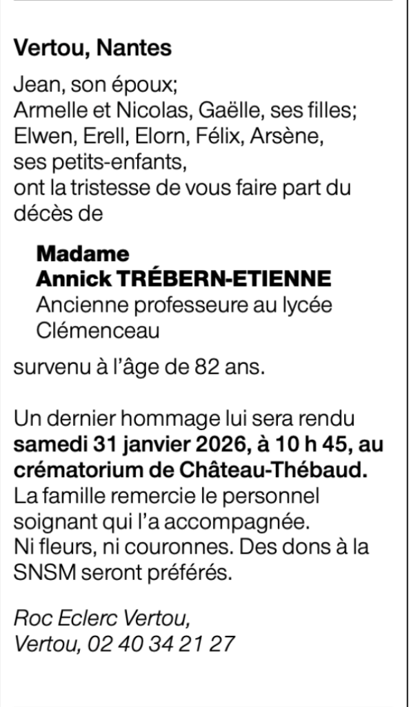 2026/01/21 – Triste nouvelle : le décès d’Annick Trébern-Etienne (Lycée Clemenceau)